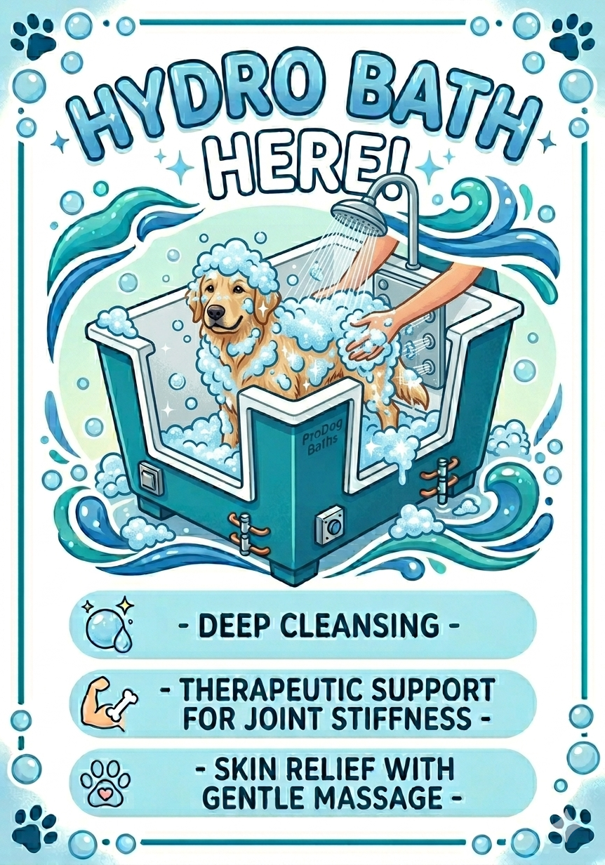 Specialised hydro bath treatments that cleanse thoroughly while being gentle on your pet’s skin.